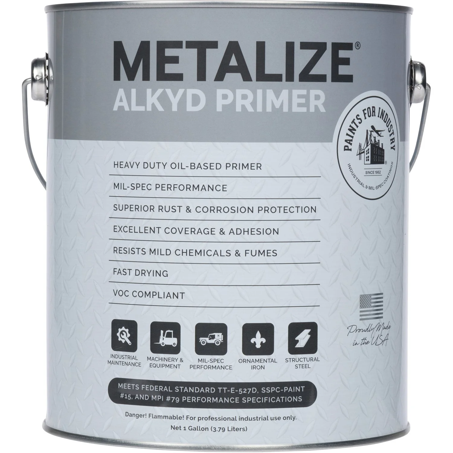 Rust-preventative primers and durable utility enamels formulated to meet Federal, SSPC-Paint, and MPI standards.